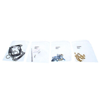 Kit includes all necessary O-rings, gaskets, jets, needles, mixture screws, float bowl screws, float valve needles and seats. (Needle jet and other pressed in jets are not included in kit.)