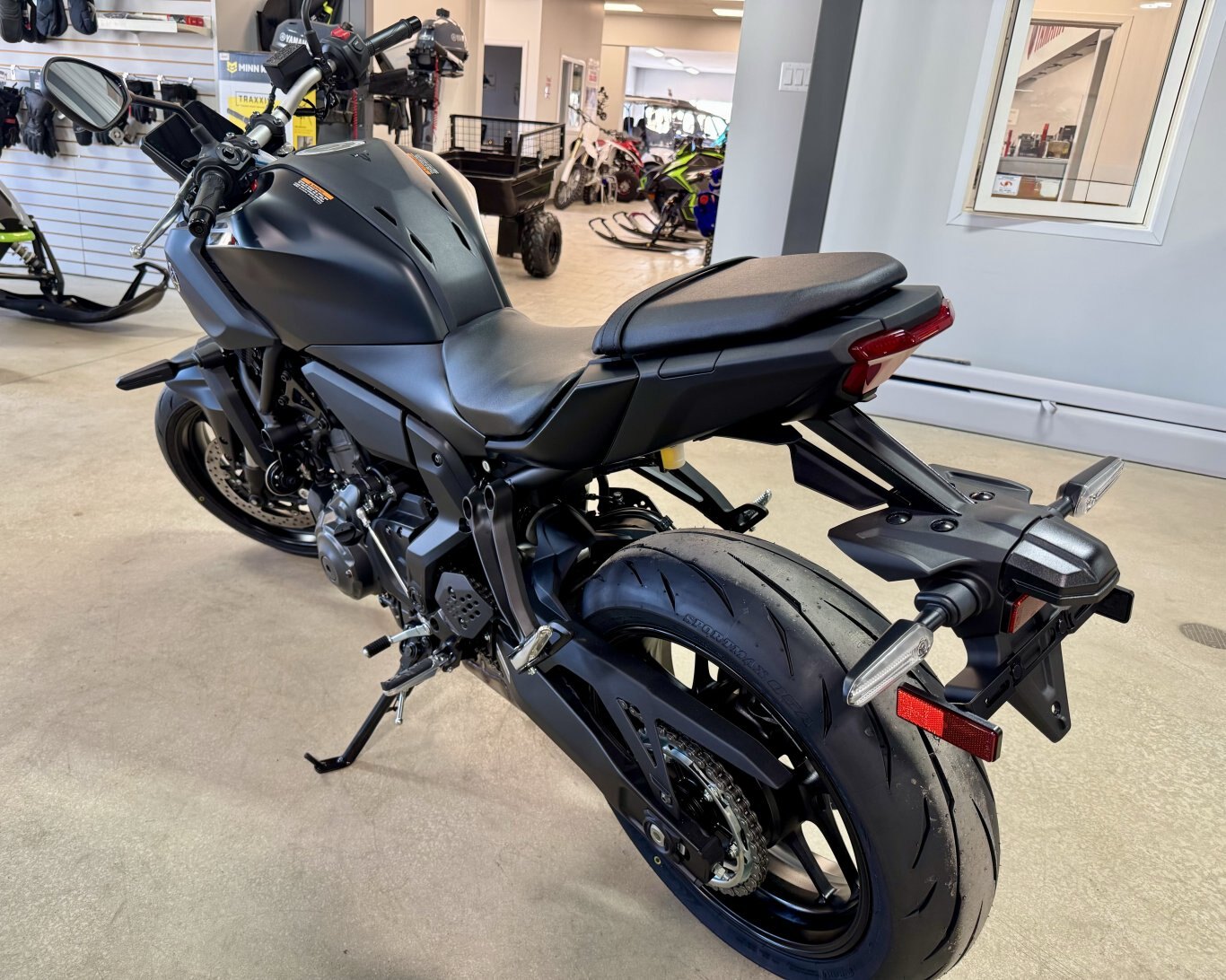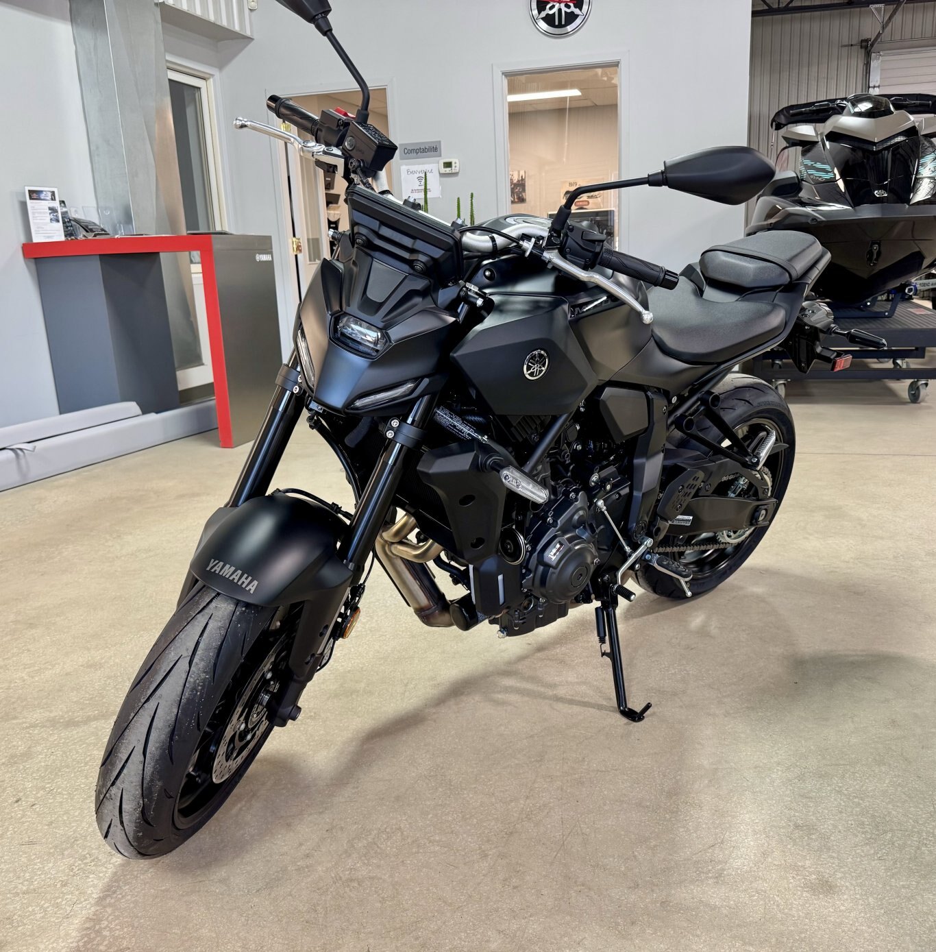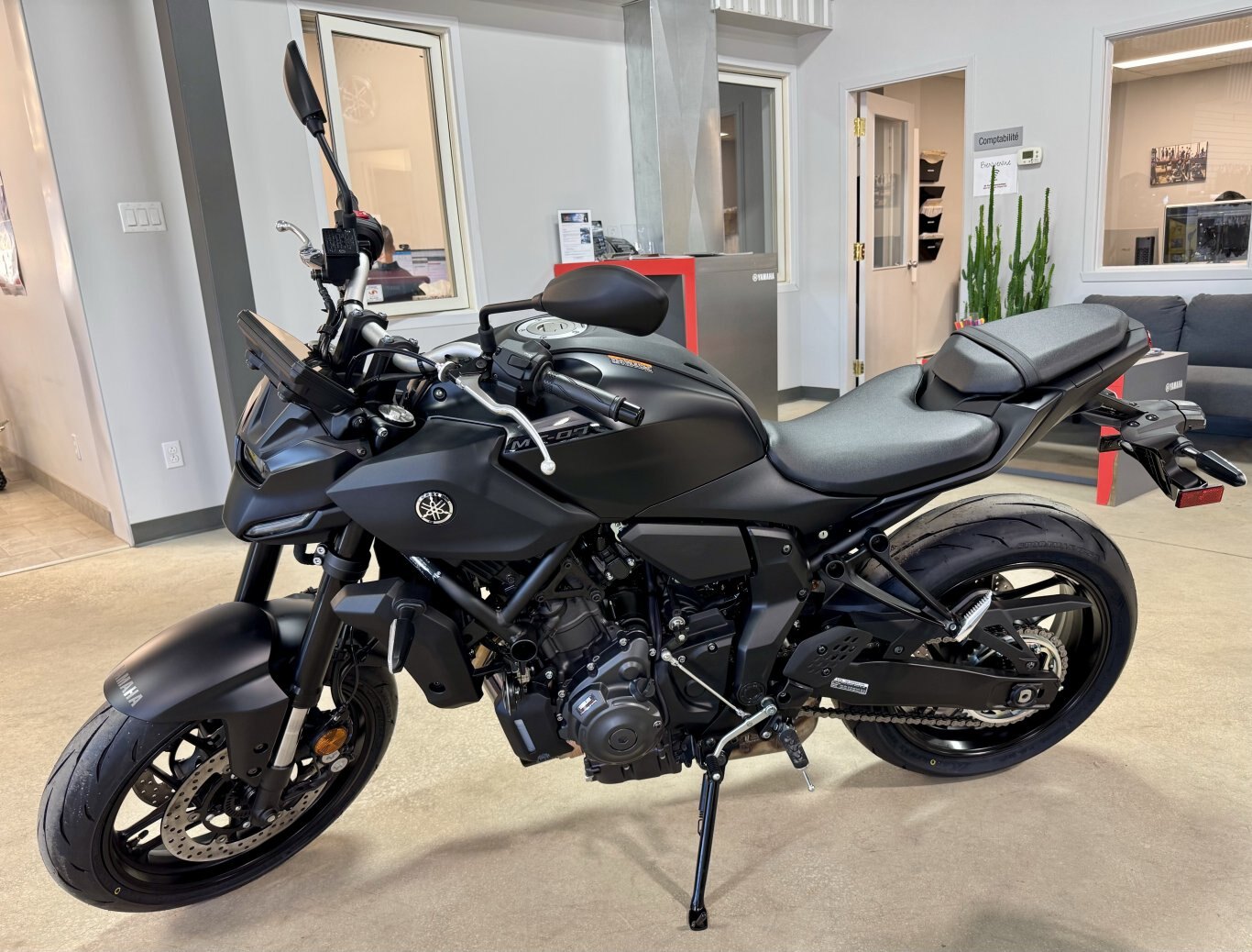 TOUCHES SPÉCIALESÉcran à deux thèmes TFT en couleur de 5 po (12,7 cm) L’écran TFT couleur de 5 po propose un choix entre deux thèmes d’affichage distincts. Le thème « Street » (route) affiche un tachymètre linéaire en haut, accompagné d’un compteur de vitesse numérique et d’un indicateur de rapport engagé — pour un look moderne bien calibré. Le thème « Touring » (tourisme), quant à lui, présente un tachymètre analogique circulaire à droite de l’écran et un compteur numérique de vitesse à gauche, pour une présentation plus classique mais toujours performante. Connectivité avec les téléphones intelligents via l’appli Y-Connect En téléchargeant l’appli gratuite Y-connect de Yamaha sur leur téléphone, les pilotes peuvent connecter leur MT-07 via BluetoothMD et voir les appels entrants, les courriels et les messages sur le nouvel écran TFT. TOUCHES SPÉCIALES: