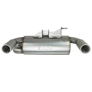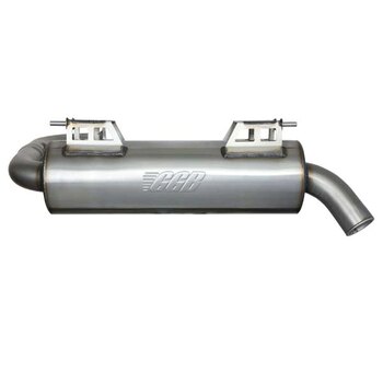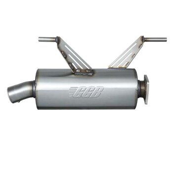 Increase power, aggressively improve exhaust tone, reduce weight, lower engine temps, and never have to take your exhaust system apart to re-pack it ever again. The GGB SPORT muffler delivers an aggressive exhaust note with a deep-tuned tone while providing the additional exhaust flow necessary for increased power. Built entirely from stainless steel this zero-maintenance exhaust system delivers a throaty rumble at idle and track-tuned attitude when under throttle. Installation is straightforward, and no modifications are necessary to install as the SPORT muffler is designed and dyno tested to run with the vehicle's stock tune or any aftermarket tune and bolts directly the original mounts. This is a chambered muffler specifically designed in-house by our designers for this vehicle and will not get louder over time.