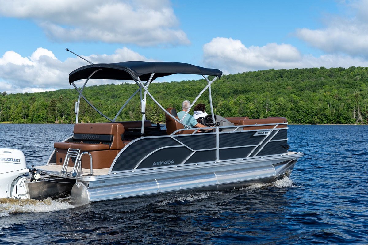 The Drakkar is our most comfortable and well-equipped pontoon. Along with a spacious swim platform, it is equipped with 2 magnificent captain's chairs and lounge seats that will delight all pleasure boaters who are looking to spend long hours out on the water. With all the standard equipment on this pontoon, you will not find anything comparable at this price!